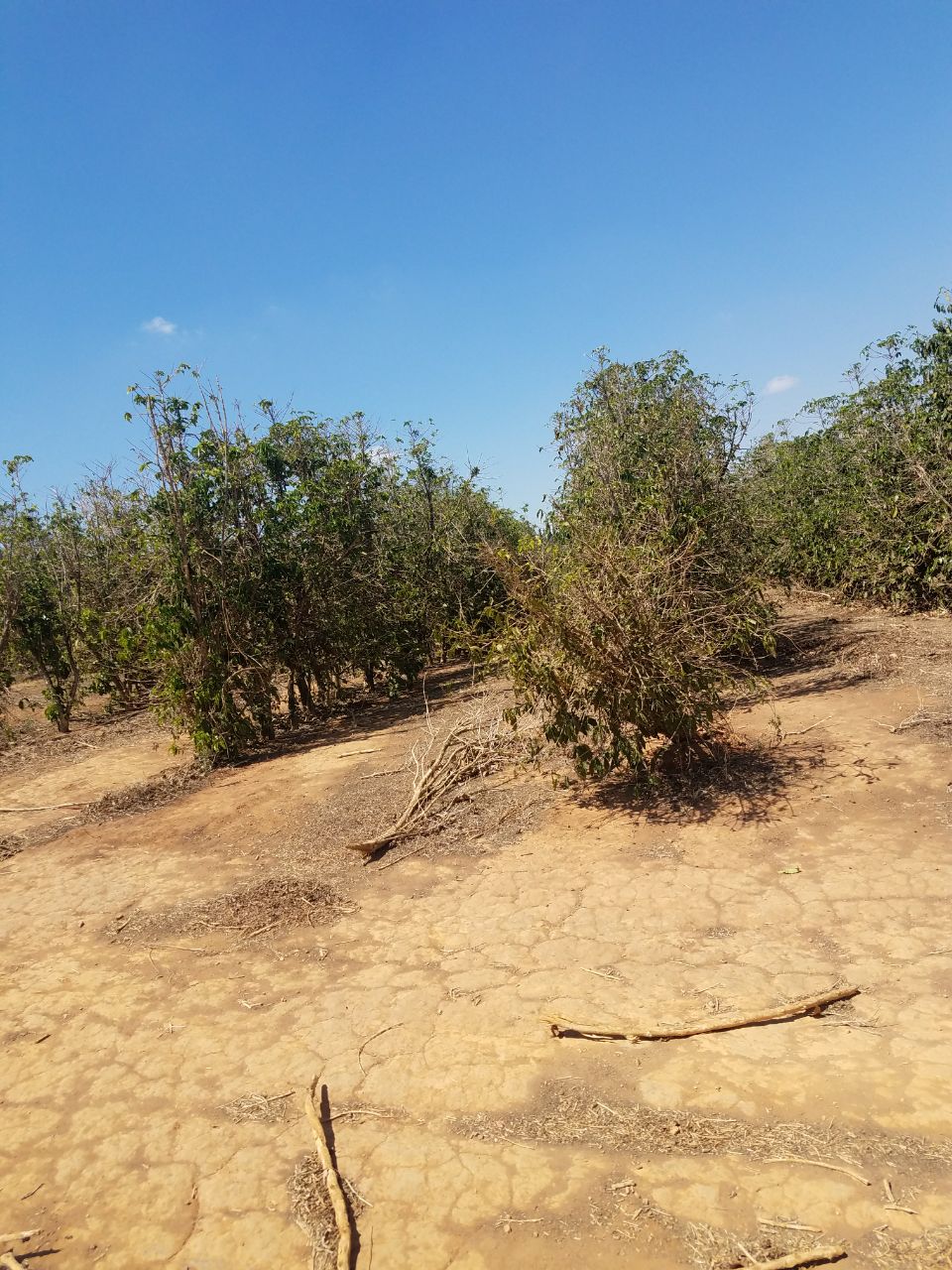 Adeus grande safra Estamos viajando pelas regiões cafeeiras e é preocupante a desfolhamento drástico das lavouras. Passamos a analisar os dados pluviométricos dos últimos anos e podemos afirmar que estamos atravessando uma situação crítica de seca muito próxima a vivida em 2014, que foi uma das piores secas do século. De janeiro a Agosto de 2014 choveu 397mm e no total, tivemos um índice pluviométrico de 891mm. Agora em 2017, o acumulado até 30 de Agosto está em 486mm. Quando somamos a média histórica de 28 anos (1990 a 2017) chegamos em 913mm. Portanto, em 2014 no período referenciado, tivemos 517mm abaixo da média e, esse ano estaremos com 428mm. Concluímos que a seca de 2017 está se comportando, muito próximo a de 2014.