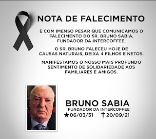 É com pesar que a Intercoffee comunica o falecimento de Bruno Sabia, fundador da indústria, aos 90 anos. Bruno deixa 4 filhos: Júlio, Fernando, Bruno e Maria.